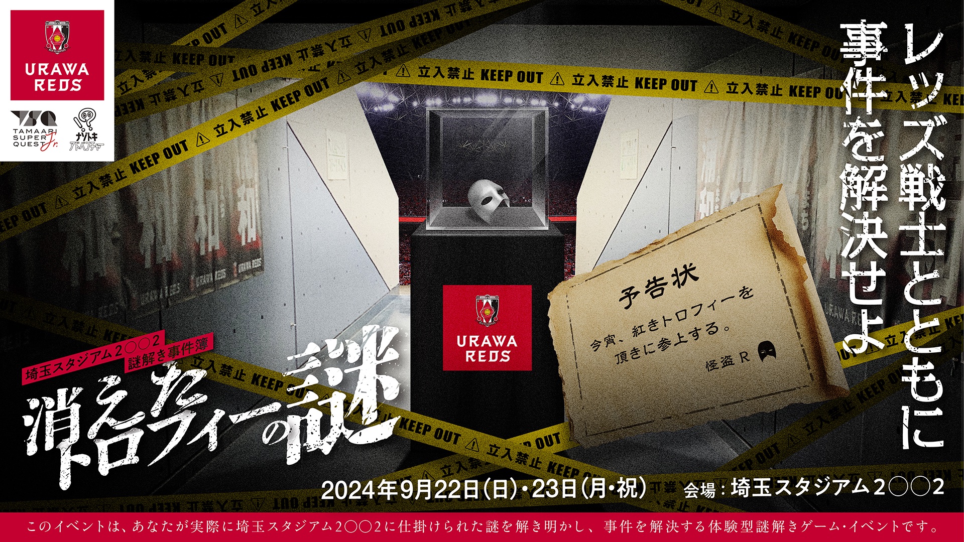 9月21日(土)~9月2日(月・休)に埼玉スタジアムで開催される【埼スタAutumn Festival】の中で、9月22日〜23日に埼玉スタジアム2◯◯2謎解事件簿「消えたトロフィーの謎」の開催が決定しました!
